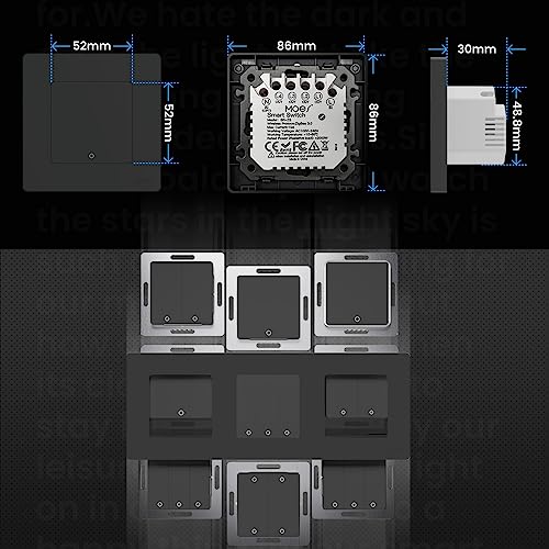 About this item Newly Designed Light Touch Button with Star Ring Halo: The advanced design philosophy of the Star Ring series combines beauty and technology. With its protruding logo and nickel black finish, it showcases wonderful construction style and impressive workmanship. The Star Ring Halo on the switch serves as a backlight indicator, creating a bright lighting effect that resembles the starry sky when the switch is turned on. Satisfying Click and Soft Touch: The Star Ring smart switch provides an unparalleled tactile experience that is both visually pleasing and user-friendly. Unlike traditional mechanical buttons, this switch has a superior touch feeling material that produces a crisp click sound similar to an excellent mouse. Made of high-quality PVC material, it is safe, and non-toxic, with a tested lifespan of 2 years and 5 million button presses. No Neutral Line and Capacitor needed, two wiring methods are available, making it an ideal option for homes with or without neutral wires. The Star Ring smart switch is compatible with the Tuya Smart/MOES app and can be controlled via your smartphone for smart lighting, wireless remote control, scheduling timer controls, and voice commands with Amazon Alexa or Google Assistant. You can also share devices and control groups for added convenience. Fully Functional with a Unique Appearance: The Star Ring series offers full integration of function and appearance, allowing you to easily get smart home scene linkage by pairing it with a Tuya ZigBee hub.